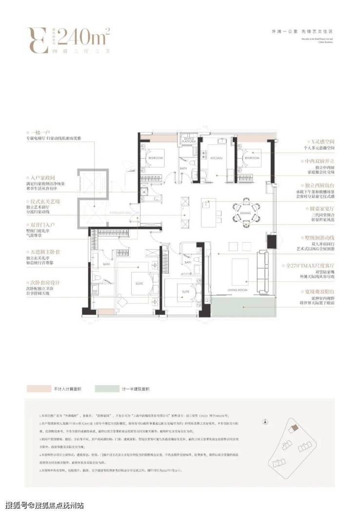 “开发商华润置地,通过无柱设计,实现270度极致视野和充足采光。直面北外滩城市风光,在家中就能感受到城市会客厅的独特魅力!”