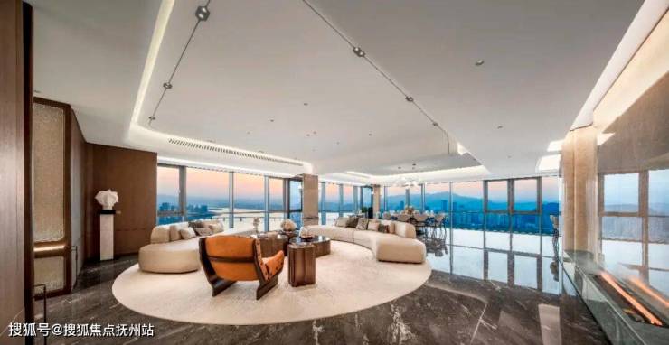 实景样板房更是展示了近100㎡的江景会客厅、近50㎡的餐客厅和约150㎡的主卧等空间,着重凸显“空中宫殿”般的奢阔体验。
