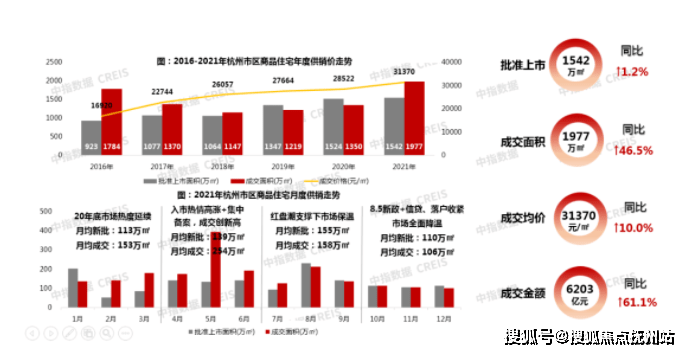 据中指研究院数据统计,2021年杭州市商品住宅全年成交1977万㎡, 成交均价31370元/㎡,其中90-110㎡之间的产品占主导,约占整体成交的4成。
