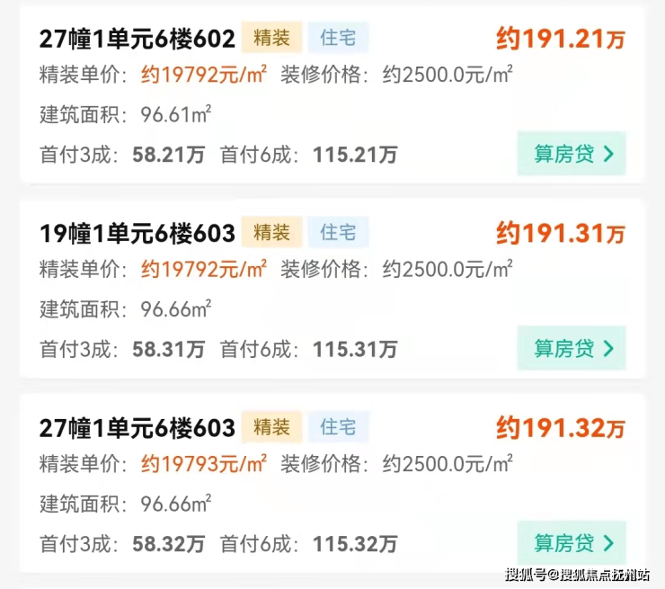 启航城本批次部分房源价格图