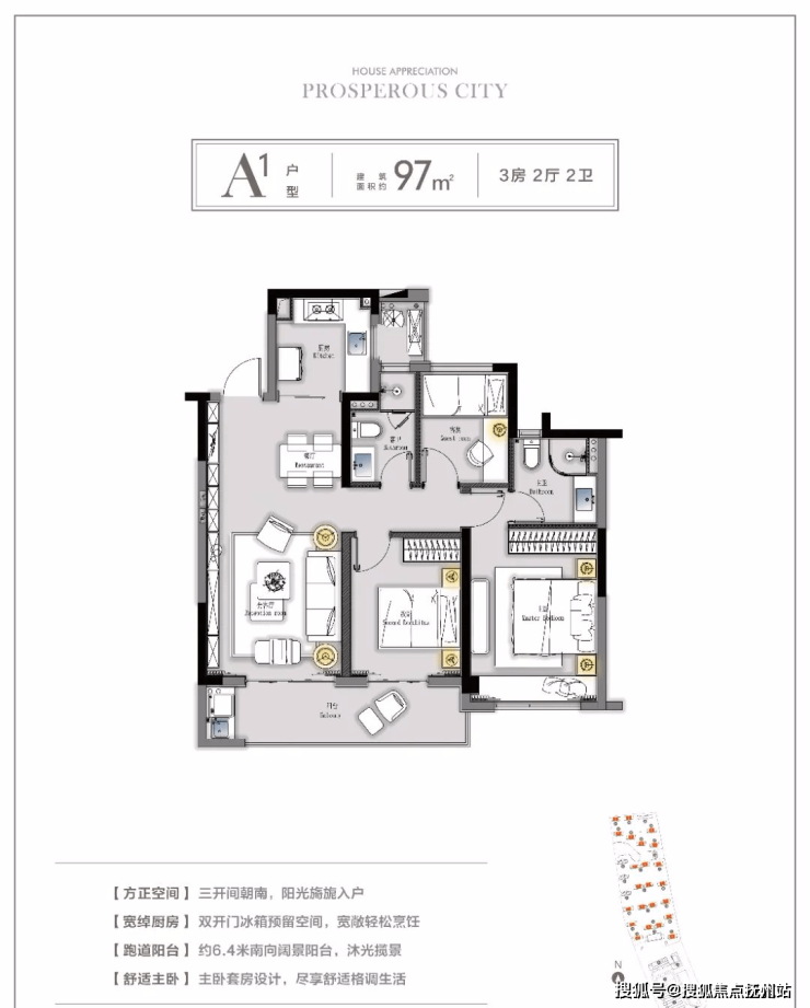 如预算有限,总价可控,上车难度较小的建面约97㎡户型就是很好的选择。
