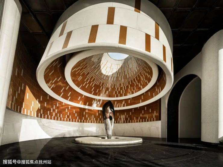 大尺度入口为展示区提供了充足的缓冲与引导空间,为后续的空间序列(核心筒艺术空间、景观庭院)做好 “铺垫”,实现了功能的实用性与空间的叙事性统一。