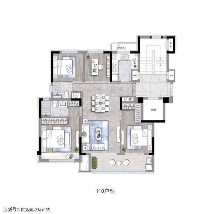 后期应该也可以将客厅与西侧次卧打通改造成横厅。