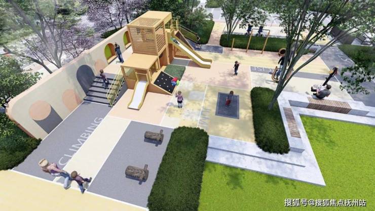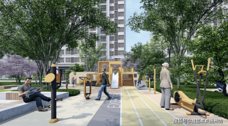 健身活动区和儿童活动区自然也是标配,但 项目把它们一体化布置,方便业主看护孩子的同时,也可以健身活动。