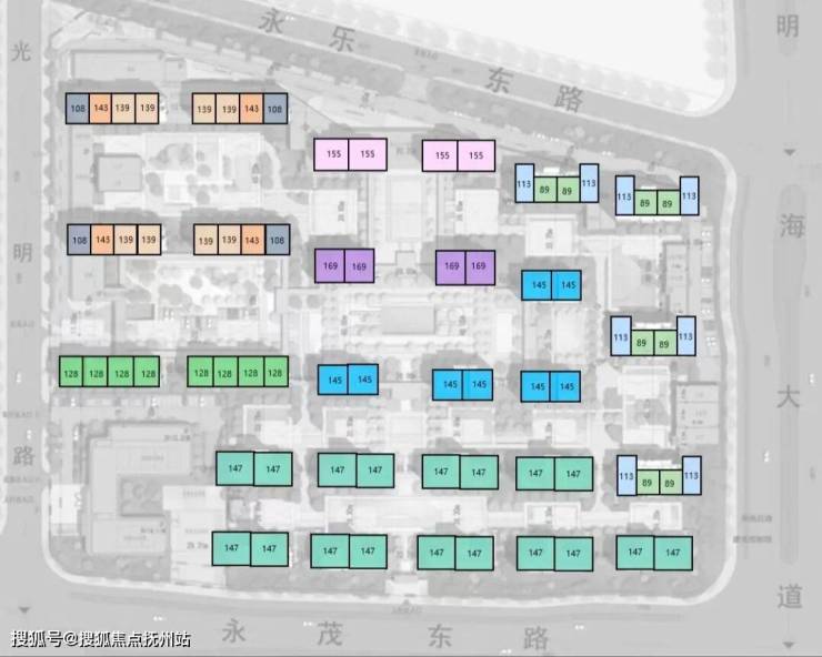 项目户型面积段89/108/113/128/139/143/145/147/155/169平。从户型分布看,120平以下小面积所占比例不高,主力面积段是139-147平。个人觉得这个地段做139-147平为主的首改产品,未来去化存在难度。
