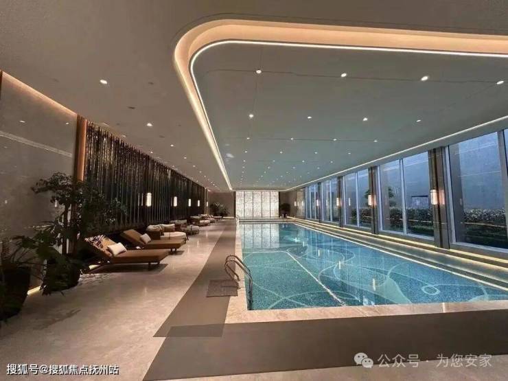 社区配套:社区景观采用 “一轴三进一心六园” 的布局,营造出自然度假式的居住氛围。同时配置了室外蓝宝石泳池、室内恒温泳池、体育运动室等休闲健身设施;还承建了约 2500㎡的未来社区场景配套,包含社区礼堂、社区食堂、幸福学堂等,能满足业主休闲、社交、养老等多元需求。