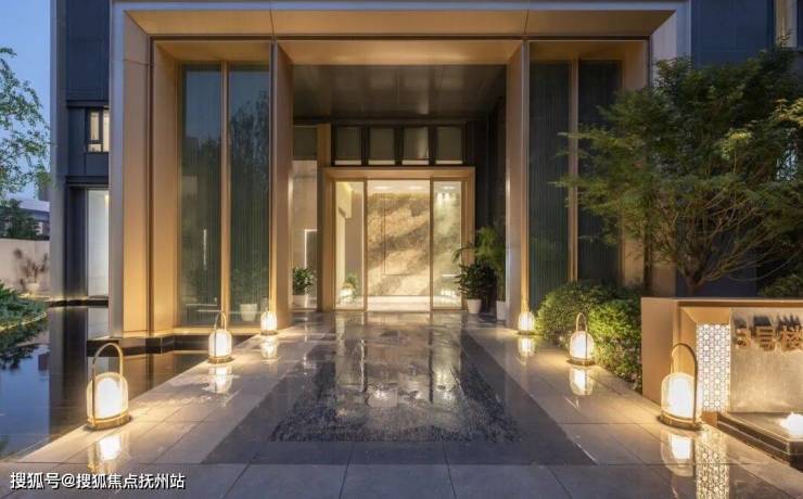 星级酒店式的主入口,甄选 PRADA 绿岩板,搭配金、石、木等多重材质,营造出尊贵的氛围感和领地感,更是业主身份标签和生活价值展现。