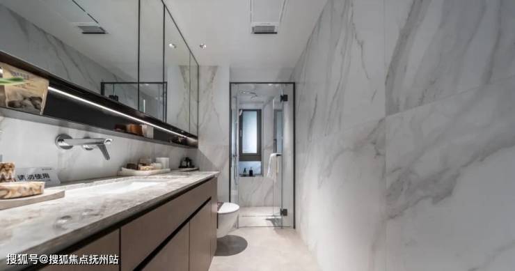 餐厅定制餐边柜;主卫为女主人加配的美妆冰箱;主客卫的定制抽纸盒,阳台提前安好的电动晾衣架、厨房及卫生间的壁龛……每一处都十足的从实用出发,打造既美观又实用的居住空间。