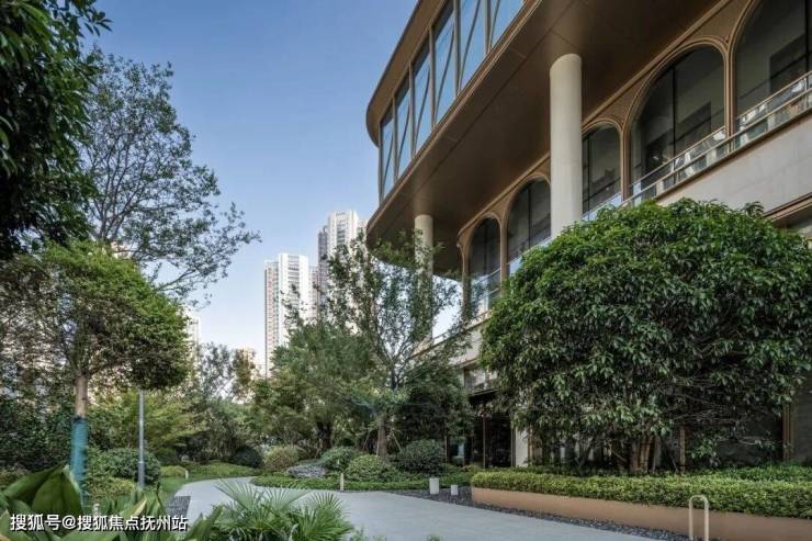 内部园林上,约36000多平的土地全为绿化面积。不是在建筑缝隙之间种花栽树,而是在园林中,写意的点缀了几栋建筑。