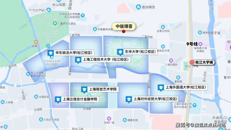 松江大学城高校云集,有上海外国语大学(松江校区)、东华大学(松江校区)、华东政法大学(松江校区)、上海对外经贸大学(松江校区)……