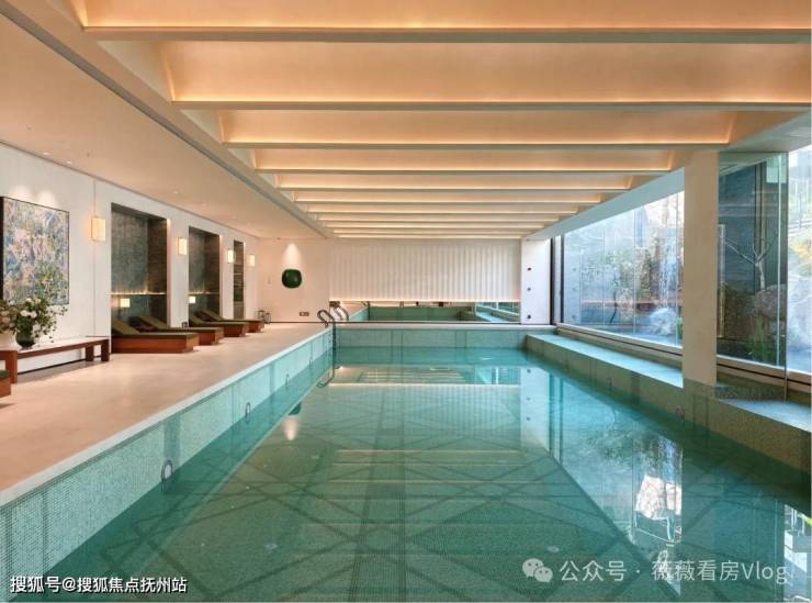 恒温泳池:采用全景落地玻璃墙,巧妙消融了室内与自然的界限。畅游其间,庭院山石如天然屏风倒映眼前,仿佛在自然山水间徜徉。