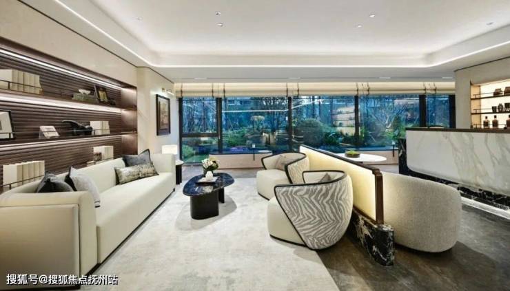 以泛会所重塑室内与室外的连接关系,将生活方式与空间融为一体。分布在 6#、7#、11# 架空层的泛会所,引入行政社交、艺文生活、儿童成长服务等主题空间,全方位满足业主事业与家庭的多元生活需求。
