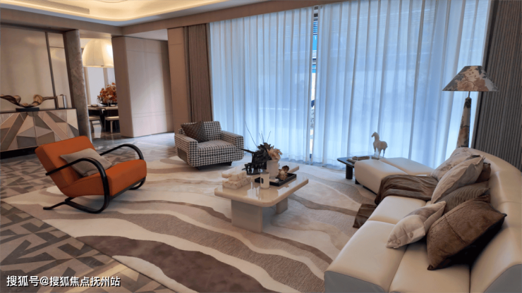 本次开放的合院样板房,是启幕的核心所在。建筑面积约293㎡高定宋风合院样板房亮相,传袭大环低密匠意,以“东方艺术理念与现代美学质感融合” 为设计理念,诠释理想栖居。