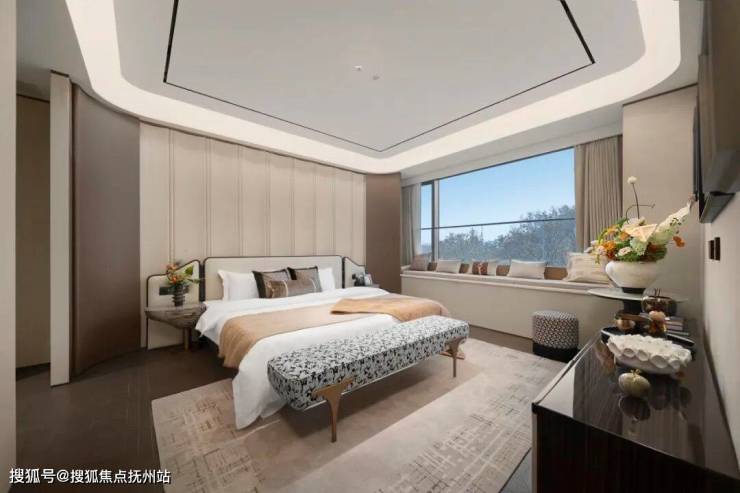 主卧套房以总统套房为蓝本,双开门入内,独立玄关、衣帽间、多功能区与卫浴依次铺展。约7米面宽,甚至超越许多户型的客厅尺度,以无出其右的空间气度,回应层峯生活的格局与想象。