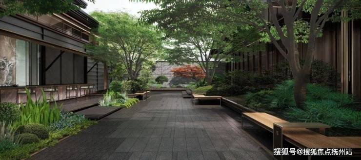 第二景-风帘翠幕:进入青承门后,是一方精致的芭蕉庭院,让业主有一个洗尘归心的宁静体验。