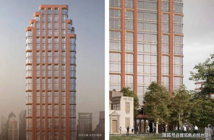用Art Deco常用的竖向线条来解决高层建筑的挺拔感、用红色陶板来勾勒出海派老洋房的红砖意象。同时,建筑立面采用大量高性能系统窗+大面积Low-e玻璃,节能环保的设计理念,让住宅接近零能耗。