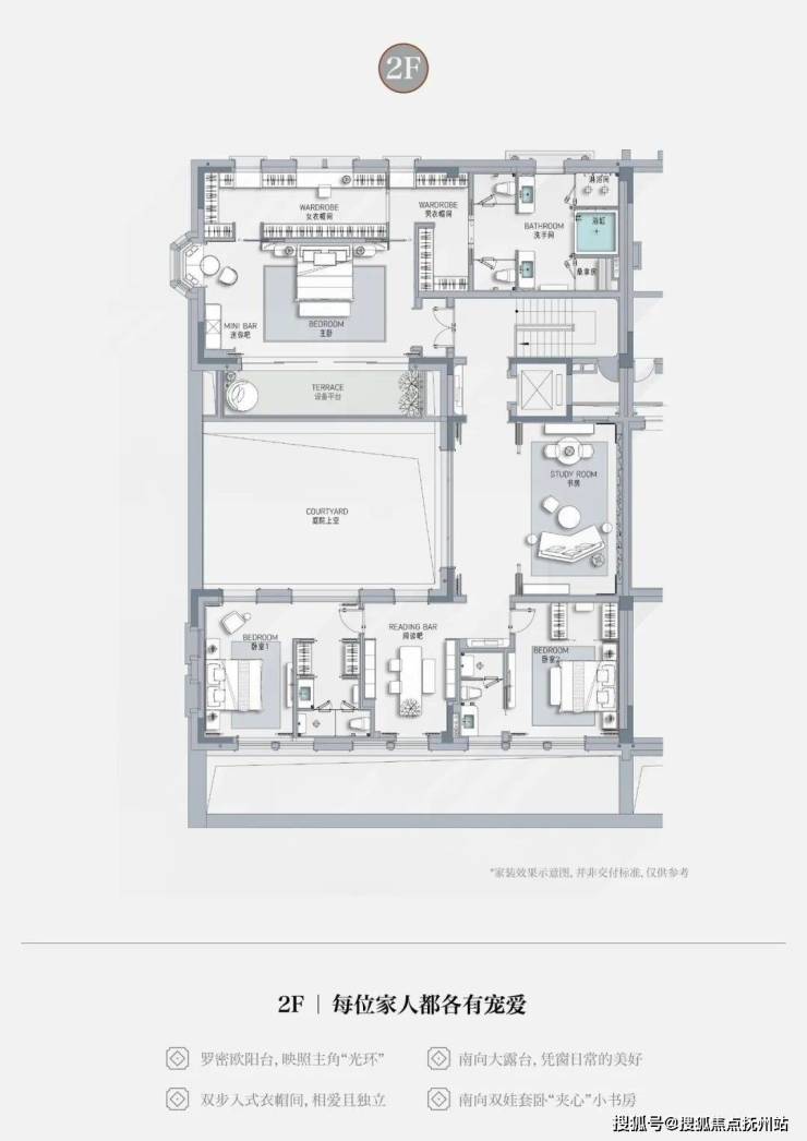 • 从容抵达步入地下会客厅,转角衣帽间换一身便服,轻松切换身份情绪