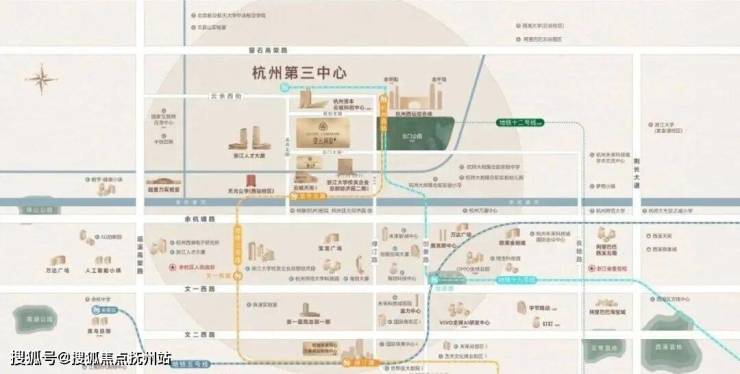 第三中心属于杭州城西科创大走廊中轴,阿里、菜鸟、 VIVO全球AI研发中心(在建),OPPO全球研发总部(在建),字节跳动(在建),浙大校友企业总部经济园(在建),杭州资本科创中心(在建),浙江人才大厦(在建),超重力实验室(在建)等大型产业云集。