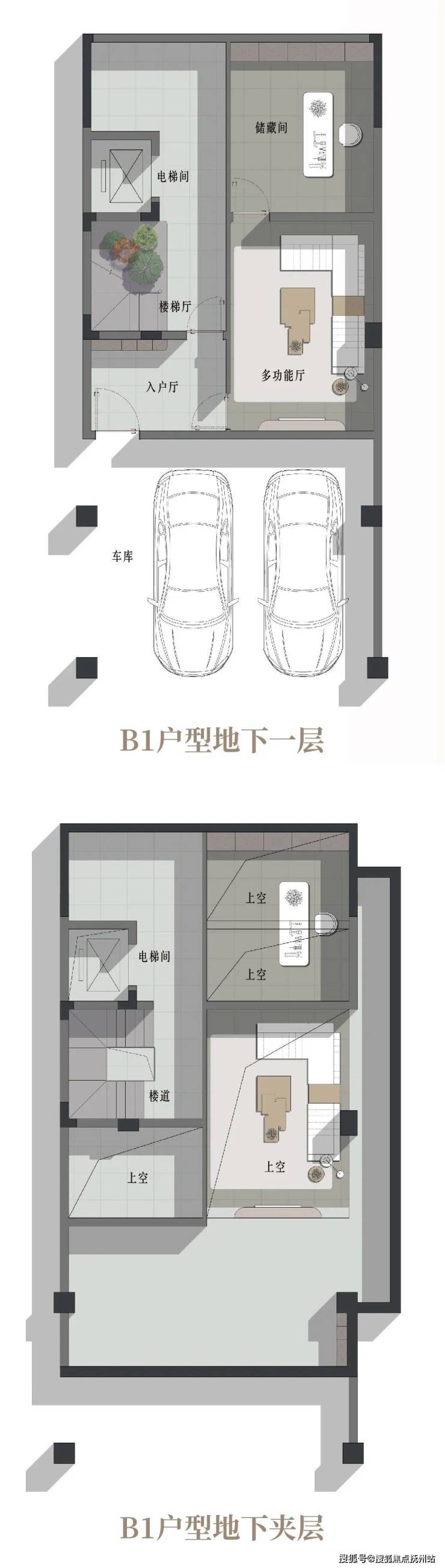金翊·金云院双层地下空间,以中庭挑空的形式规避了传统地下室层高过低的弊端,同时通过夹层的设计提高地下室的利用率,规划了会客区、休闲区、储藏室等功能空间,后期便于居者根据自身兴趣调整设计。