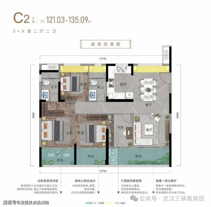 增设X可变空间,通过家庭结构和需求进行空间功能变化