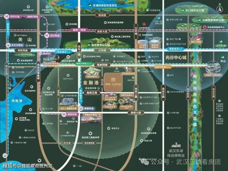纵横立体交通网:便享三环线、光谷大道、高新六路等立体交通,纵向串联光谷金融港、软件园和光谷老城区;横向连接武昌、汉口等核芯地区及光谷东。
