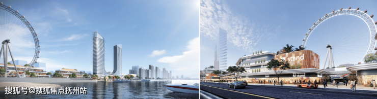 以开放式的滨水商街,串联起公园、酒店、公寓、摩天轮、水岸码头等, 打造休闲、观光、娱乐、消费一站式微度假生活体验。