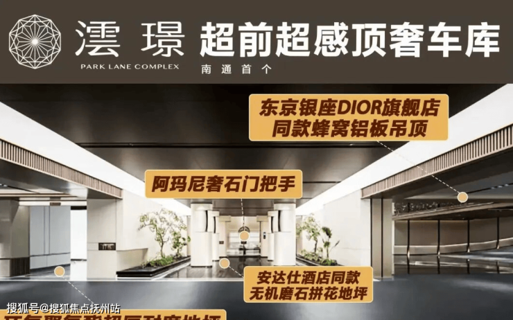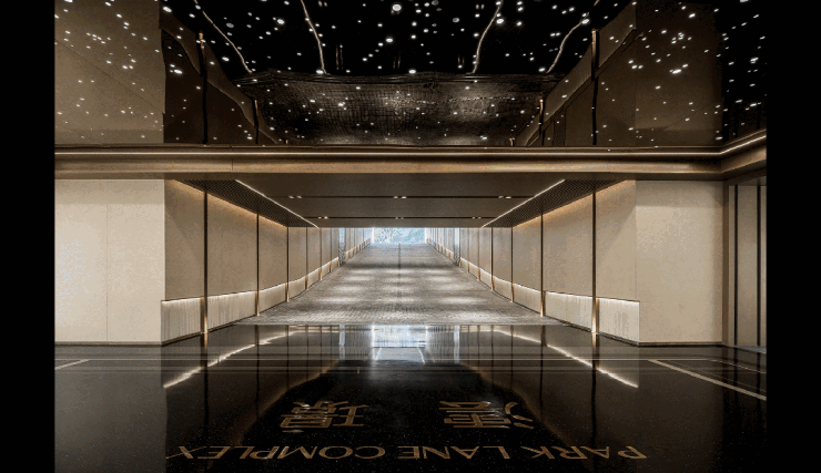 选材方面,车库采用了环氧聚氨酯超厚耐磨地坪,车道大面使用东京银座DIOR旗舰店同款蜂窝铝板吊顶,车库大堂门厅的设计上,运用了阿玛尼奢石门把手,特别定制了安达仕酒店同款无机磨石拼花地坪……