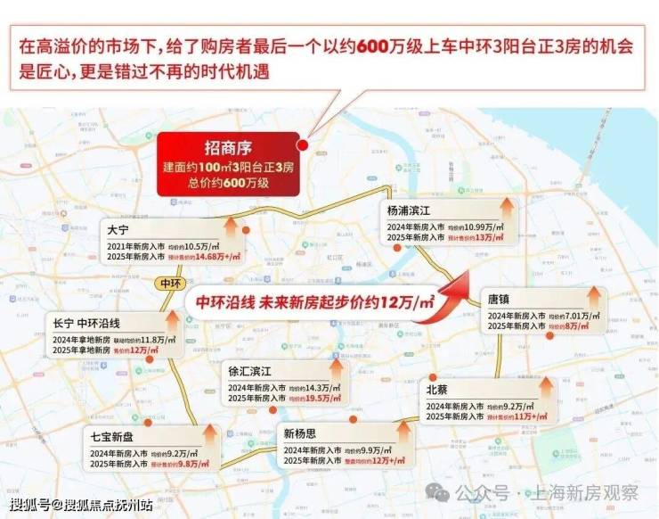 整个中环沿线,如今的新房均价,起步门槛就是约11万/㎡+!换句话说,招商序是目前中环沿线最后的洼地,也是最值得入手的“潜力股”。