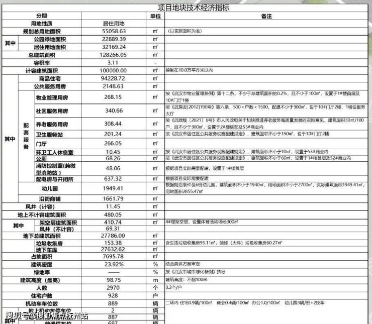 地块规划用地面积约55058.63㎡,总建面约128266.05㎡,住宅建面约94228.72㎡,容积率约3.11,总户数928户,住宅机动车停车位889个。