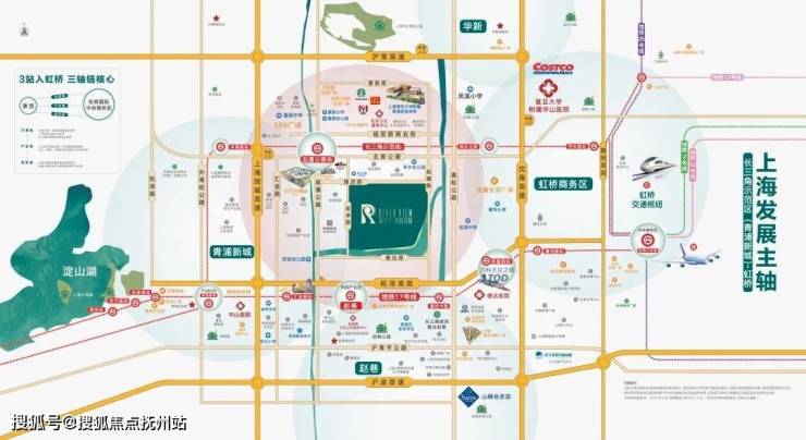 项目北侧直线约1公里就是示范区线赵重公路站(在建),向西可以直达青浦华为研发中心,向东2站即可到达前湾,3站直通虹桥枢纽!