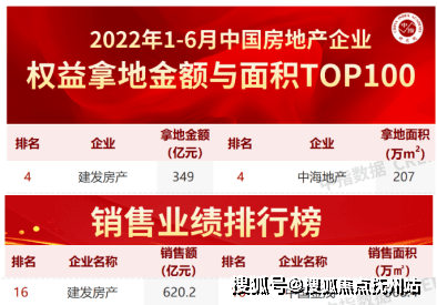 在机构较新统计的2022年上半年全国房企指标排行榜中,建发房产拿地金额349亿,位列第4,很好地证明了企业充裕的现金流实力;销售金额620亿,排名第14位,实力国企,赢得市场高度认可和信赖。(信息来源于:中指研究院)