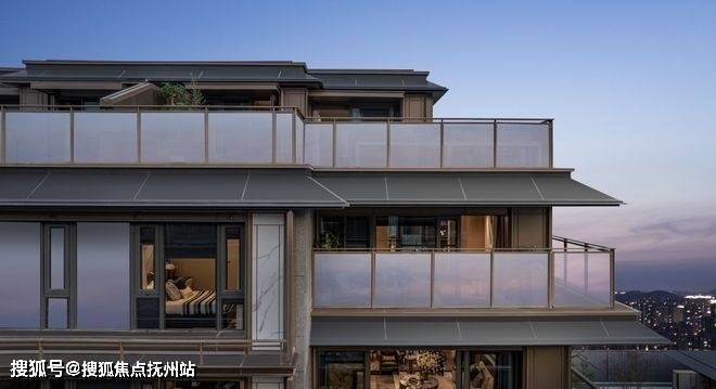 游弋惠山、运河之间,叠拼美墅楼尊汲取龙光塔之重檐形制的现代金属挑檐建筑,兼具东方韵与现代形,立面以“石中藏玉”美好寓意,通过金属、大理石、香槟色金属线条、石材幕墙,更以超高窗墙比,在降低能耗的同时,又赋予更好的采光与观景视界。