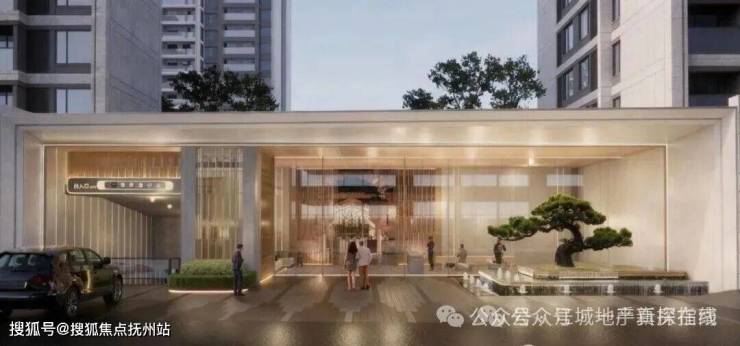 以“顶级酒店入口仪仗”为蓝本,叠加东方“松石水韵”意境。约60米舒展形象展示面营造“步入即显贵”的仪式感;约30米艺术豪奢定制门厅,弱化传统社区门庭的阻隔感,强化尊崇迎宾感。
