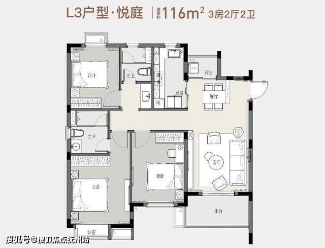 116平方米的3房2厅2卫户型图