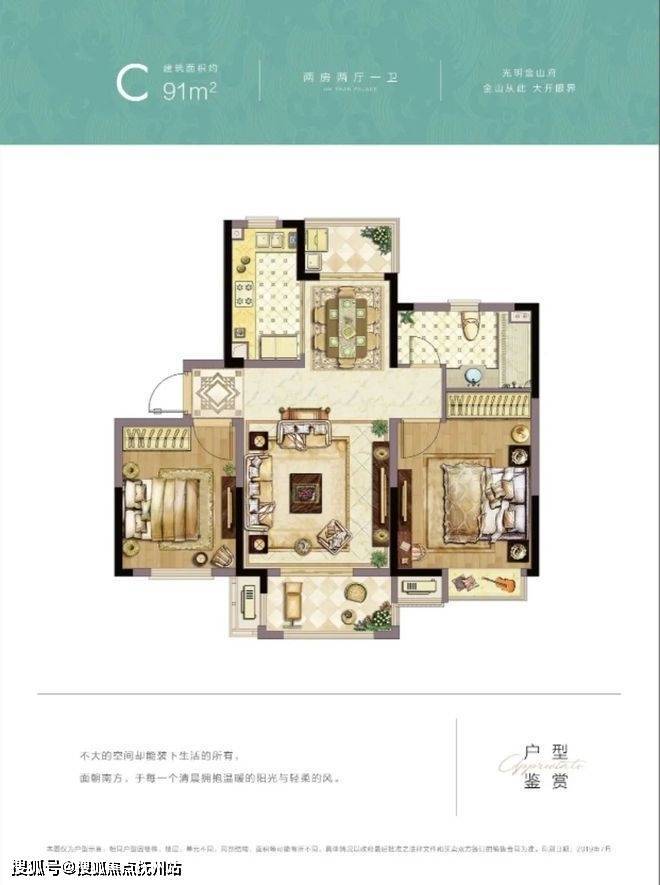 1、户型设计南北通透,飞机户型经典,光照充足,南北双阳台配置。