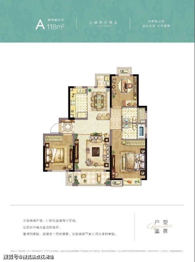 1、户型不仅南北通透,采光充足,还有南向双阳台,是经典飞机户型。