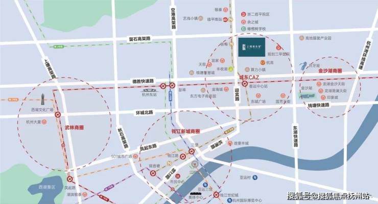 【东湖高架路】项目东侧约800米,向南衔接德胜、钱塘两条快速路,开车直达到市中心、钱江新城以及滨江奥体、萧山机场。