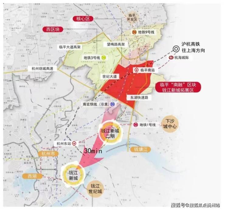 项目所在的板块处于沪嘉杭G60科创大走廊和城东智造大走廊交汇点核心位置,同时也是杭州连接大湾区,接轨大上海,融入长三角的桥头堡,可以说是整个城东未来的中央活力区,而板块作为连接临平新城区于杭州中心城区枢纽要地、未来将全面融入主城一体化。不仅如此,从钱江新城1.0到江河汇再到钱江新城2.0,从中也能看出钱江新城发展过程是一路往北的,目前举杭州之力在发展的钱江新城2.0无疑是未来的杭州城市中心,而它的北面也就是项目所在的南融区块,也将继钱江新城2.0之后,钱江新城最重要的拓展区。整个南融区块目前已完成25平方公里范围的战略规划研究,未来可期。