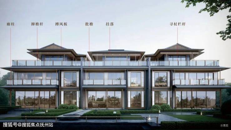 新宋之姿:宋式“三段式”结构,搭配挂落、批檐等元素,弱化现代建筑的硬朗感,强调舒展轻盈的形态。