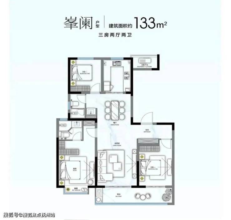 建面约122㎡和133㎡的两款户型都是三房两厅两卫的设计,不同的是133㎡用餐客一体的设计自然的分割了主卧和次卧,让每一位家庭成员都有自己的空间,不仅提升了生活的舒适性还节约了户内面积。