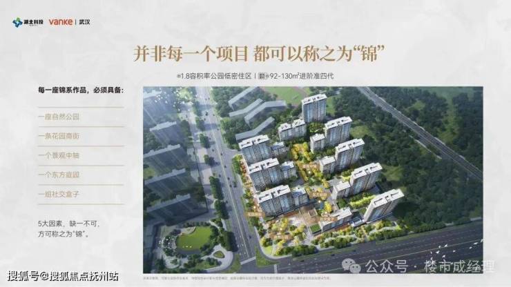本项目为万科在光谷打造的首个准四代低密公园住区,楼层只有8-11-18层,户型得房率均超过100%