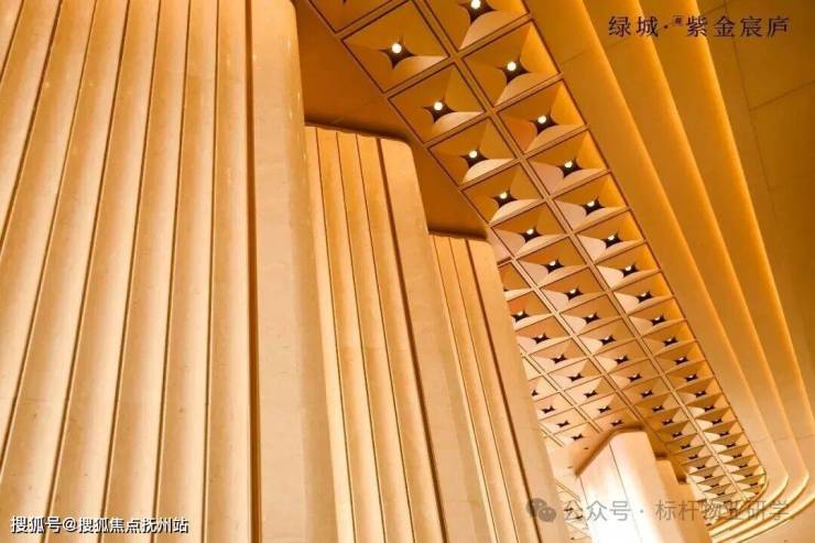 外立面设计上,项目采用香槟金铝板与大面曲面玻璃的组合,其设计语言与申花顶豪项目滨杭传麒府同款高端序列。不仅视觉效果出众,实际造价上更是远超常规标准。
