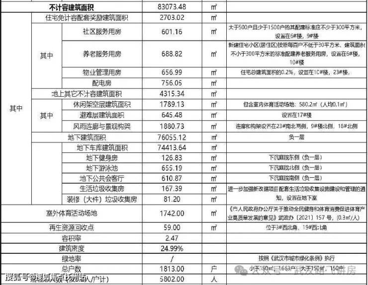 项目整体容积率2.47,建筑密度24.99%,总户数1813户,机动车停车位2143个,车位配比约1:1.18,户均建面约121平。