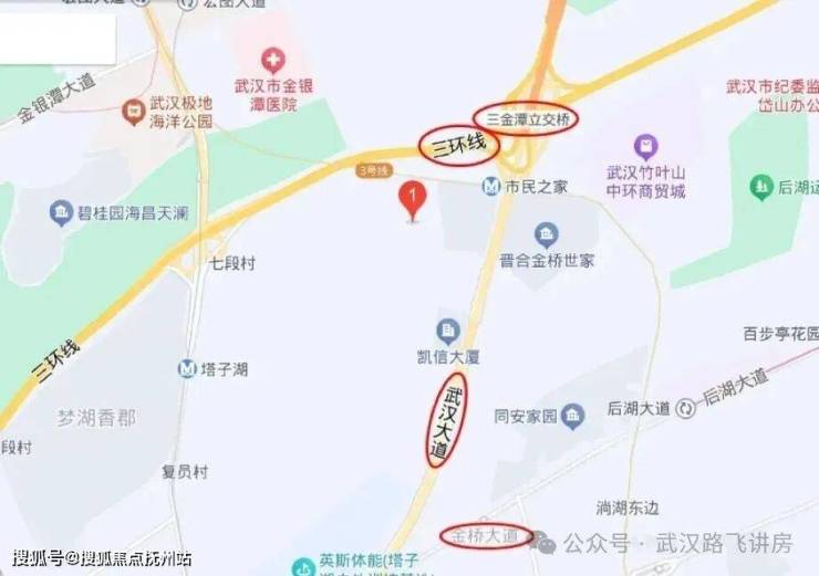 自驾方面:项目处在三环线和武汉大道交汇处,距离三金潭立交比较近。这里自驾非常方便,北面可以上下三环线,匝道口就在附近;武汉大道直达武汉长江二桥,一路到武昌。