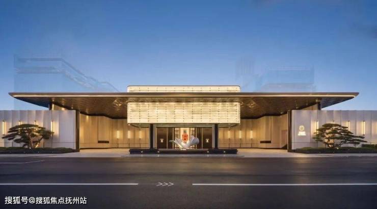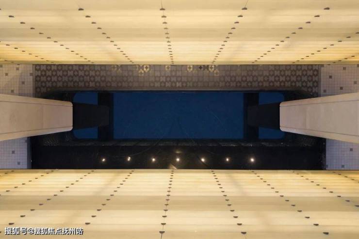 超大跨度的轻盈圆润飘顶,最干净纯粹的几何体块穿插,镶嵌着温润晶莹的玉石华盖。令人称奇的是,华盖下方镜面水系微澜泛起,映照着玉石摇曳着波光,不禁让人联想起白居易的那句“翠华摇摇行复止”---这华盖,“攀附”的可是唐明皇杨贵妃出入的尊贵礼序?
