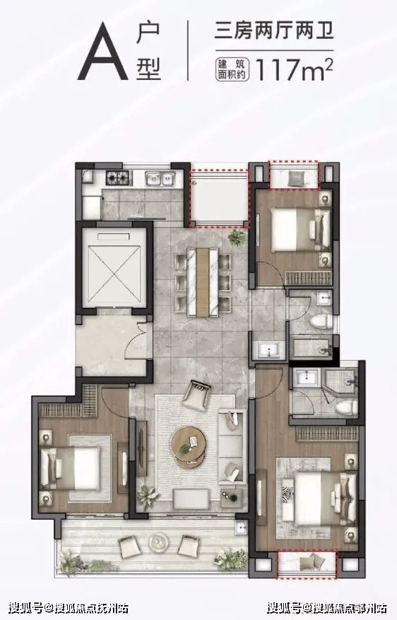 项目为毛坯交付,户型建面约117-167㎡,户型选择较为广泛,且均为三房起步,能满足多种置业客群的需求,目前咨询较多的是117、143㎡的户型,下面就为大家具体介绍各户型。