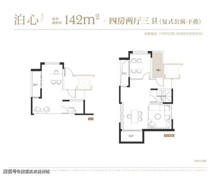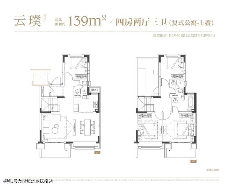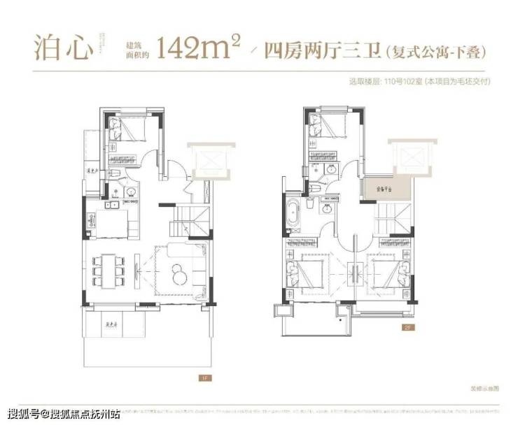 项目叠墅户型有建面约142㎡下叠,建面约139㎡上叠。