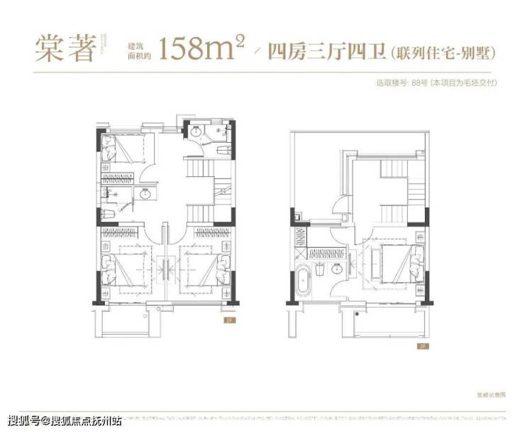 上叠户型4房2厅3卫,三层会客区,四层居住区,阳台+露台+飘窗设计,附加空间非常大,在别墅类产品中实属罕见!
