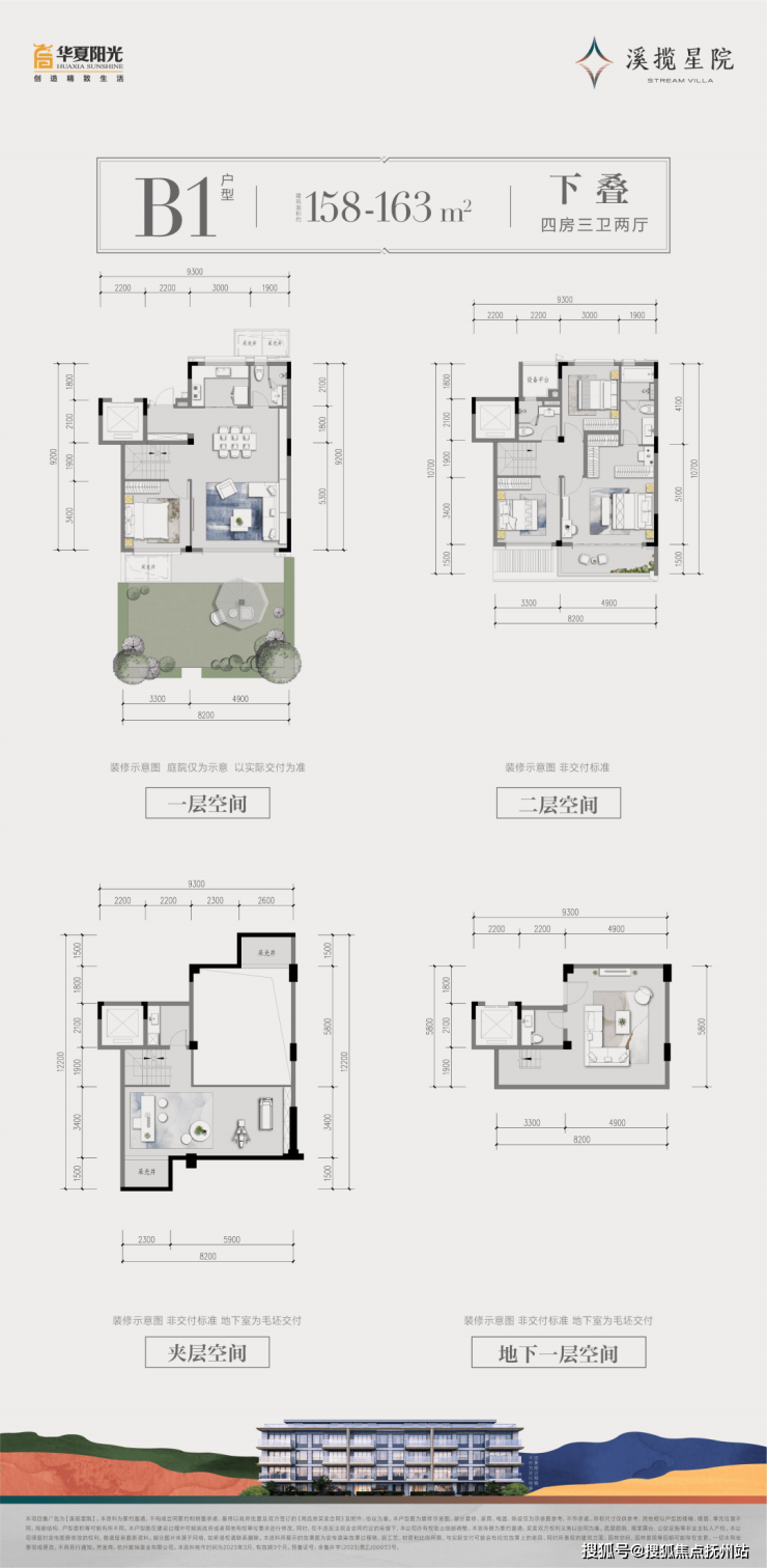 建面约158~163㎡下叠:地下室主题空间打造/餐客连厅/奢华主卧套房/独立三房