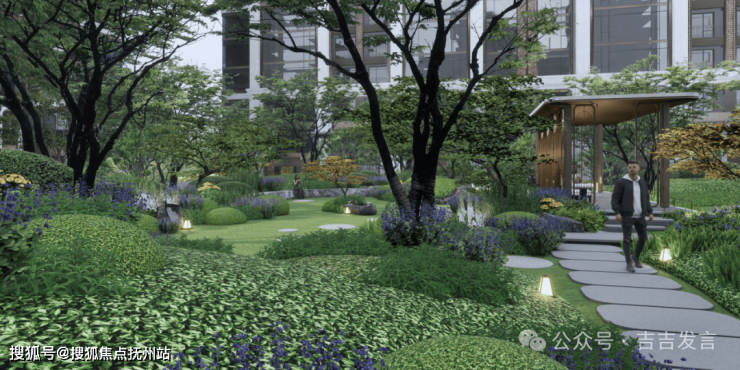十花园其三:【康养花园】以康养为主题,设置康养花园、林下太极、健身平台等,从社区邻里、生态自然、健康运动等多维度提升居住体验,周边设计观景平台,阳光草坪与组团植物共同营造静谧休闲空间,便于长者交流与家庭户外活动。